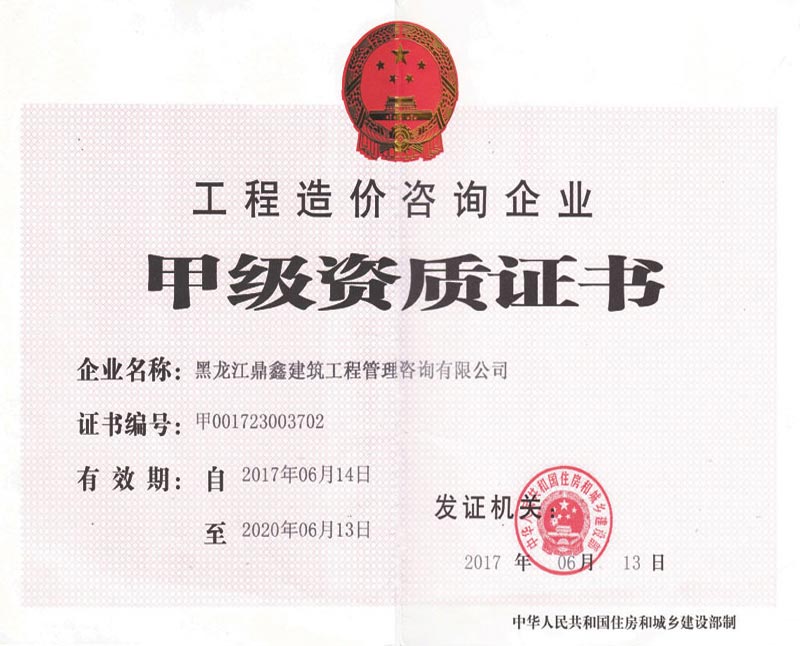 黑龍江鼎鑫建筑工程管理咨詢有限公司成立于2005年,注冊(cè)資金400萬(wàn)元。具備中華人民共和國(guó)住房和城鄉(xiāng)建設(shè)部批準(zhǔn)的工程招標(biāo)代理機(jī)構(gòu)資格、中華人民共和國(guó)財(cái)政部批準(zhǔn)的政府采購(gòu)招標(biāo)代理機(jī)構(gòu)資格、黑龍江省商務(wù)廳批準(zhǔn)的機(jī)電產(chǎn)品國(guó)際招標(biāo)代理機(jī)構(gòu)資格、中華人民共和國(guó)住房和城鄉(xiāng)建設(shè)部批準(zhǔn)的工程造價(jià)咨詢甲級(jí)資質(zhì)、黑龍江省住房和城鄉(xiāng)建設(shè)廳批準(zhǔn)的房屋建筑工程監(jiān)理乙級(jí)(市政公用工程監(jiān)理乙級(jí)資質(zhì))。主要從事建設(shè)工程及政府采購(gòu)招標(biāo)、造價(jià)咨詢、工程監(jiān)理、項(xiàng)目管理等業(yè)務(wù)。